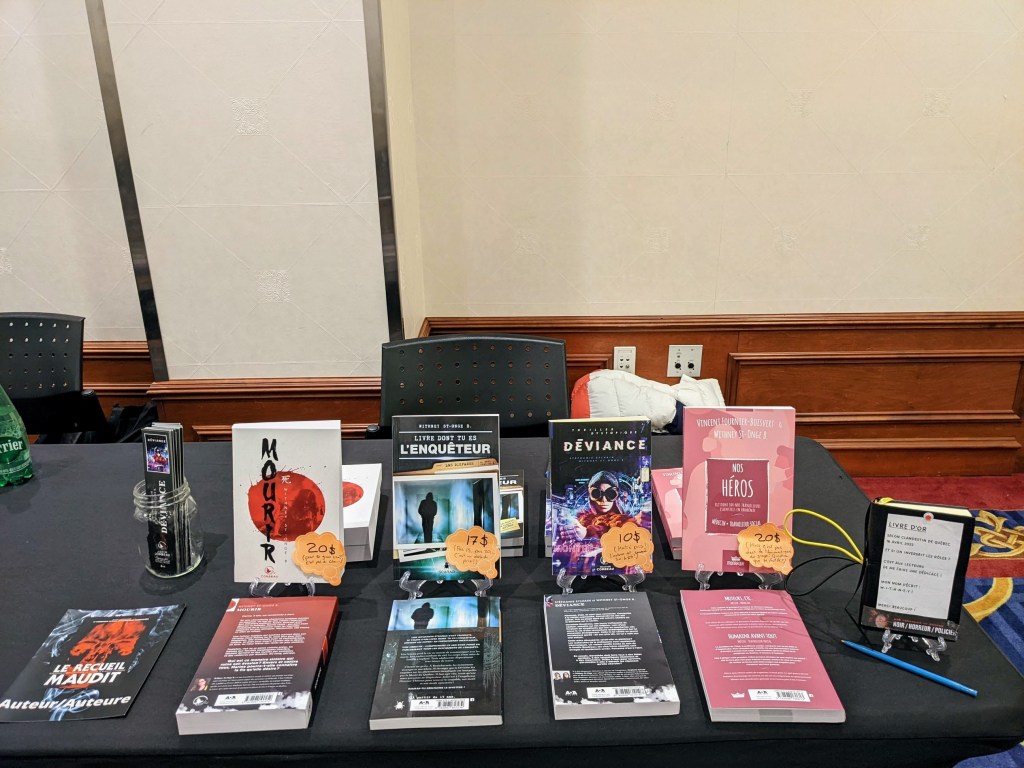 - Participé à 4 salons du livre : Montréal, Québec, Saguenay-Lac-St-Jean et Trois-Rivières. Au Salon du livre de Montréal, on a vendu pratiquement tous mes livres ! J’ai rencontré beaucoup de lecteurs super géniaux. C’était magique !