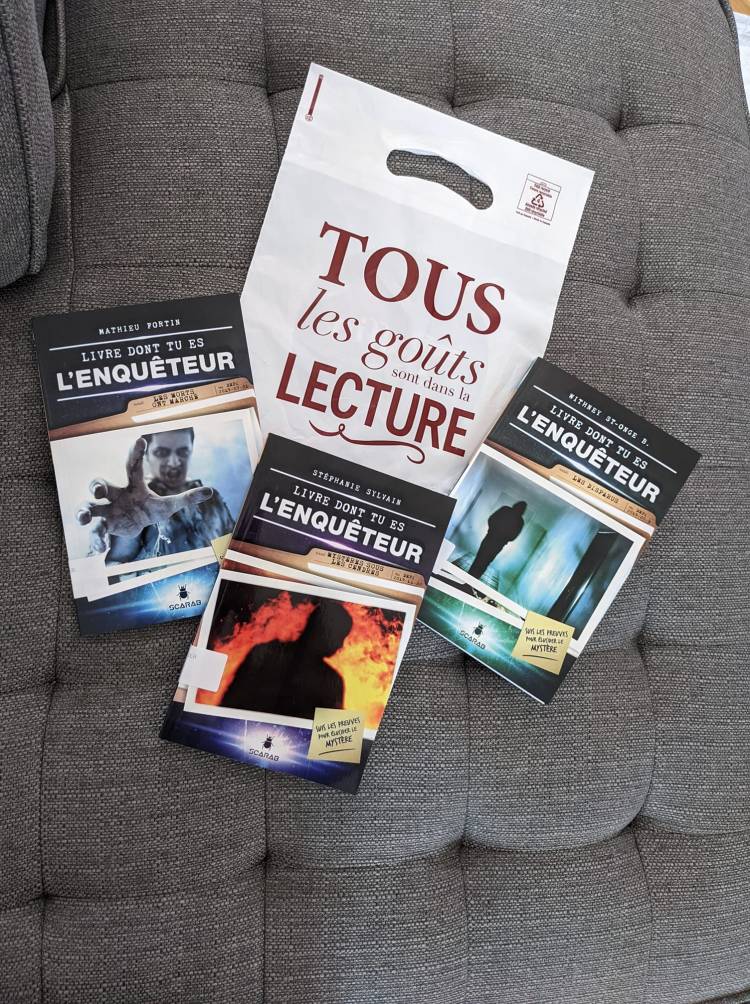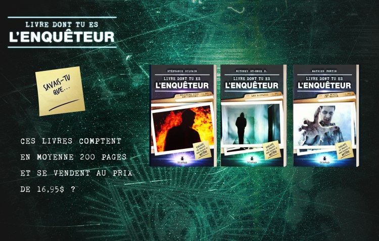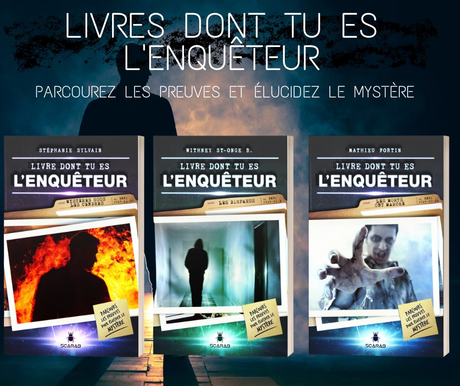Ce livre fait partie d’une collection. Il y en a deux autres pour le moment : Mystère sous les cendres de Stéphanie Sylvain & Les morts ont marché de Mathieu Fortin. Ils ne sont pas liés ensemble: tu peux tous les acheter ou n’en acheter qu’un seul, c’est à ta discrétion. Personnellement, j’adore posséder tous les bouquins d’une même collection!